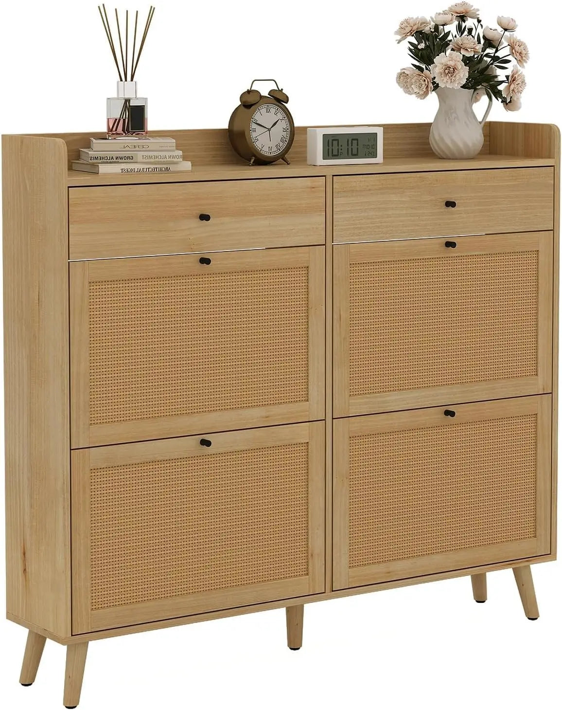 Rattan Shoe Cabinet Storage for Entryway Shoe Organizer Cabinet with 4 Flip Drawers and 2 Slide Drawers Shoe Storage Cabinet