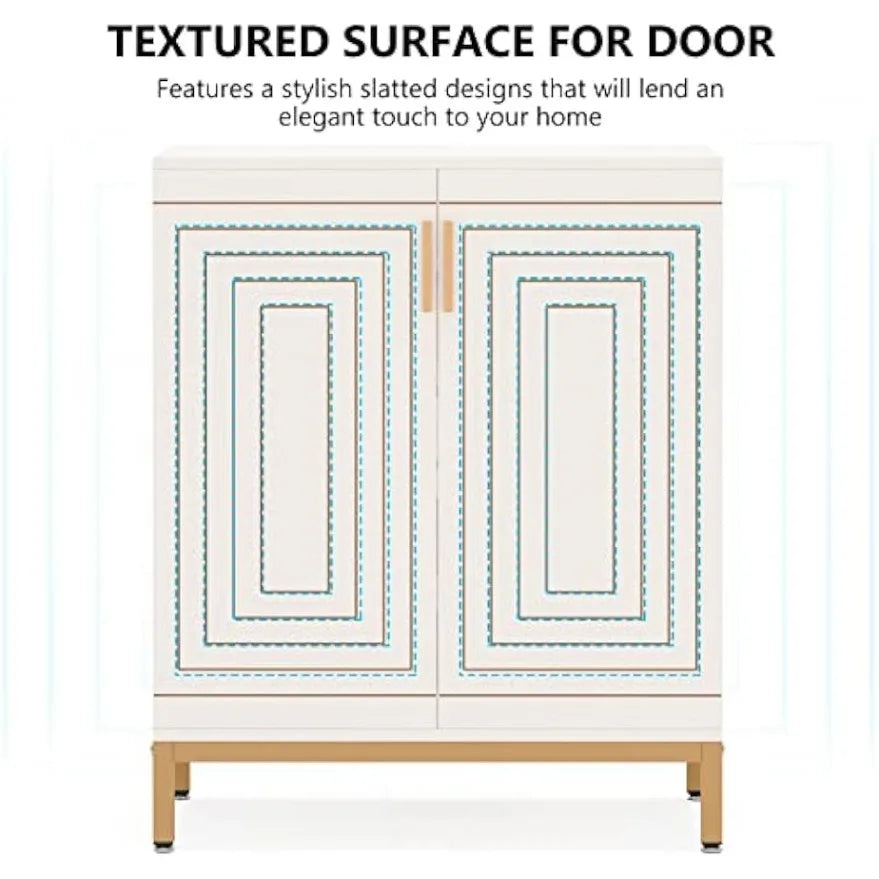 - ✔【MOVABLE BOARD & MORE PRATICAL】 Not only as a shoe organizer but also a large storage cabinet to tuck away everything effortlessly. Removable shelves inside each cabinet make this shoe organizer super easy to accommodate multiple height shoes or large size shoes. Under-cabinet cleaning is made easier and more convenient because of the high metal legs in gold finish.