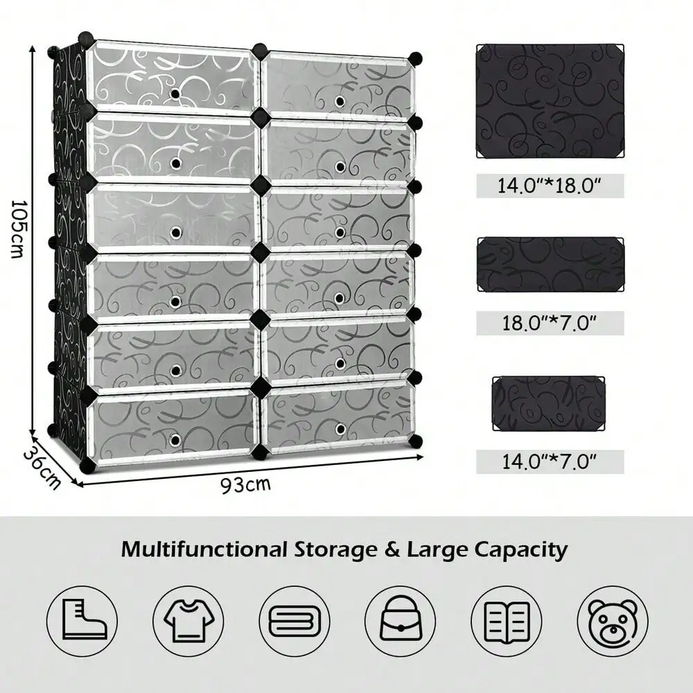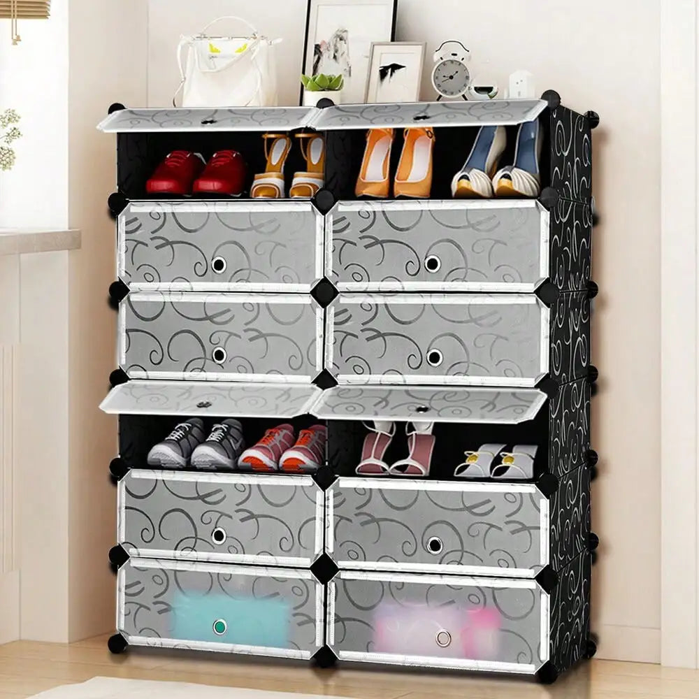 Shoe Rack 12-Cube DIY Plastic Shoe Cabinet Storage Multi Use Modular ClosetShelf